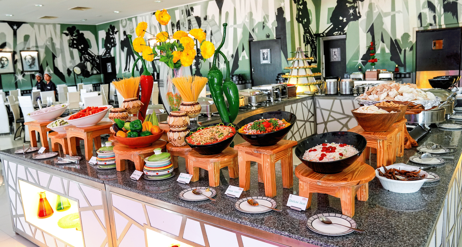 The black & white themed multi-cuisine restaurant offers Veg and Non-veg buffet in a classic filmy ambience.